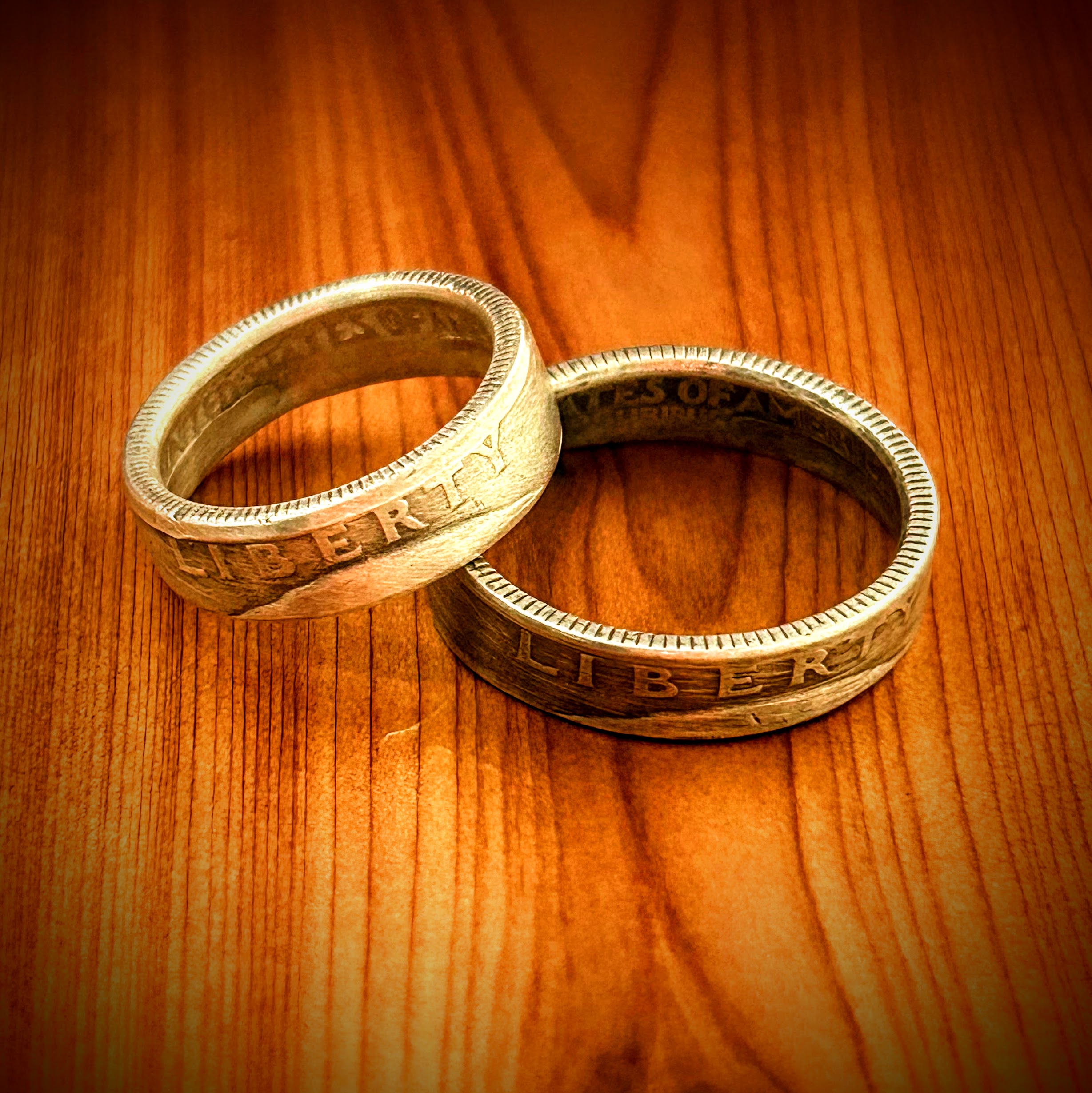 Made from a 90% silver U.S. Quarter (1932-1965), this ring is a timeless tribute to American history and craftsmanship. The iconic LIBERTY inscription remains visible on the outer band with the words United States of America seen on the inside of the ring, symbolizing the values of freedom and heritage. With its detailed design and rich silver content, this ring is both a meaningful keepsake and a stylish accessory.